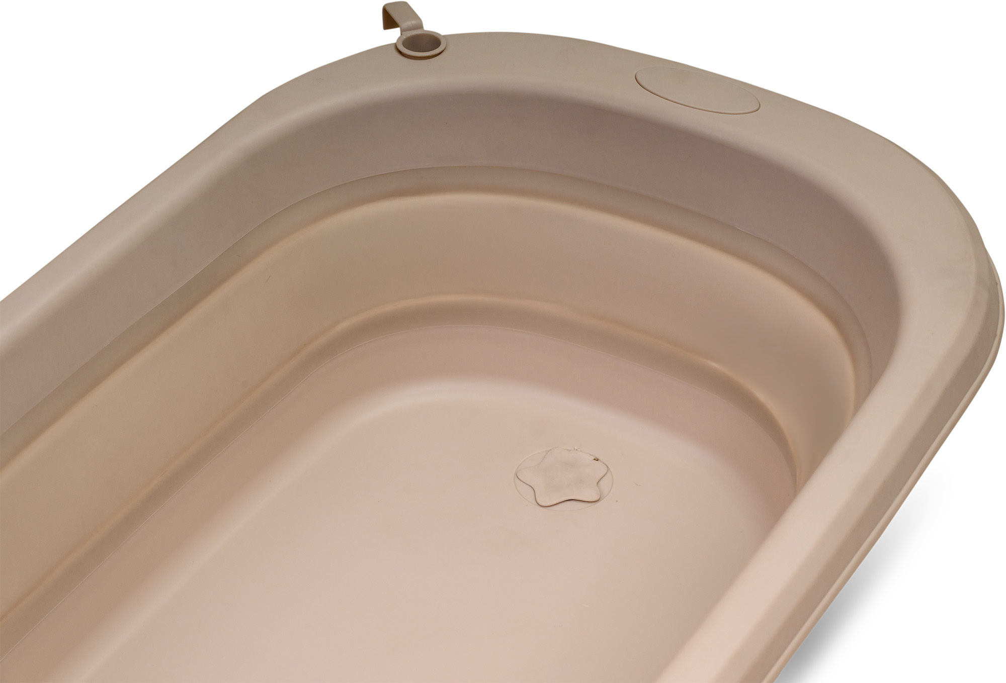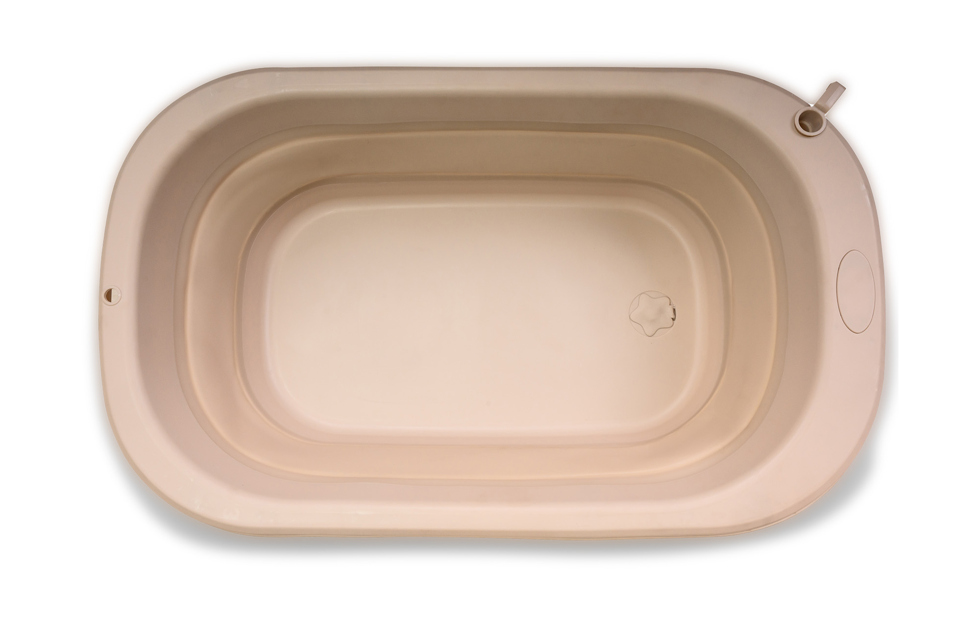 פטנט בלעדי של קיפול דק בצורה פשוטה ביותר, האמבטיה והמעמד מתקפלים יחד וחוסכים מקום.